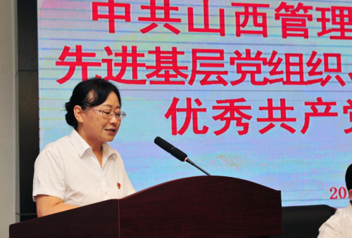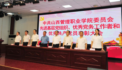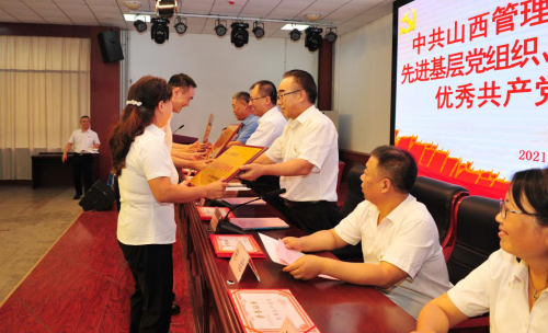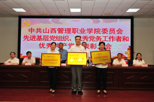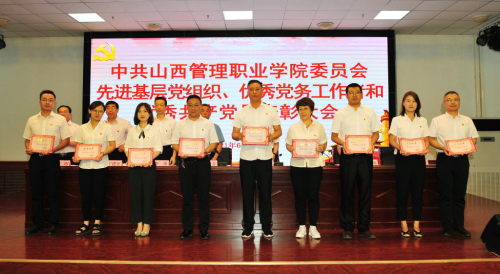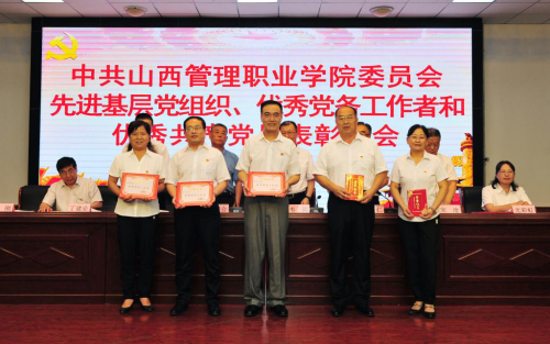 院党委副书记郭敬仁宣读《中共山西管理职业委员会关于表彰优秀共产党员、优秀党务工作者和先进党支部的决定》。受到表彰的优秀个人和先进集体代表先后上台领奖,会场响起热烈掌声。