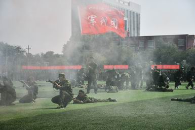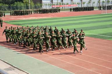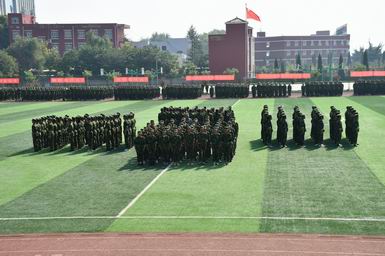 大会在雄壮的国歌声中拉开帷幕。参加军训的1000余名新生军姿挺拔、激情满怀,以昂扬的斗志、饱满的精神等待检阅。