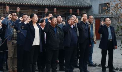 全体党员面对党旗庄严宣誓