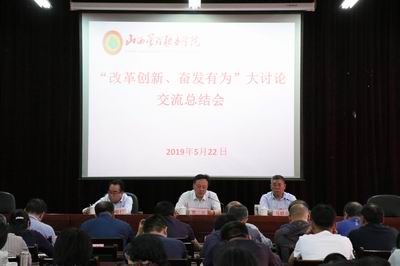 贾二元指出,院党委自开展“改革创新、奋发有为”大讨论活动以来,按照省委的总体部署和省人社厅党组的具体安排,高度重视、精心部署,推动大讨论活动向纵深开展;深入学习、广泛讨论,形成了推动改革创新的思想共识;提高站位、顶层设计,落实立德树人根本任务;对标一流、开拓思维,推动教育教学高质量发展。学院大讨论工作有活力、有特色、有措施、有成效,广大党员干部经受了一次严格的党性锻炼,广大教职员工经历了一次深刻的精神洗礼,校风、教风、学风明显改变,为全年各项工作的顺利开展奠定坚实基础,学院改革发展的良好局面初步形成。