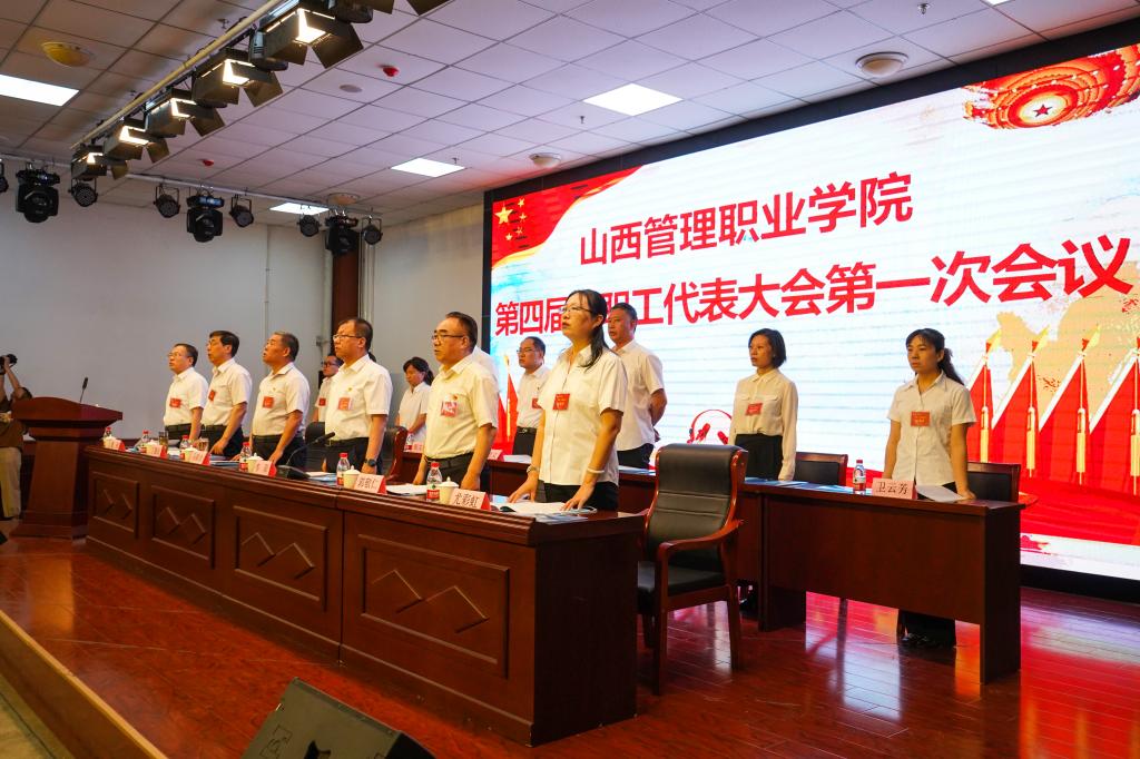 5月27日上午,山西管理职业学院第四届教职工代表大会第一次会议在崇德楼三层报告厅隆重召开。大会主席团主席、院党委书记韦阳主持大会。主席团成员在主席台就坐。