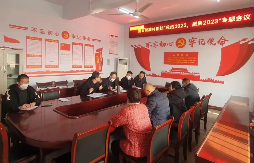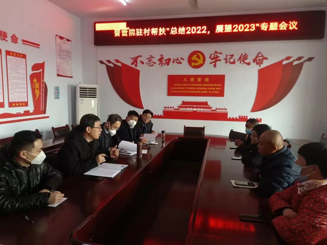 最后,王爱国一行同山西管理职业学院驻村帮扶队召开“总结2022,展望2023”专题会议。会上,王爱国对驻村工作队的工作给予了肯定,对他们这一年来代表学院深入一线、坚守岗位表示感谢。王爱国指出,习近平总书记说,文化自信是更基本、更深沉、更持久的力量。要紧紧依靠乡政府、村支部和村委班子,充分利用农村的文化长廊,文化墙等阵地,广泛地宣传乡村振兴战略,在群众中形成良好的学习氛围,提升精神风貌,提高文明乡风。
