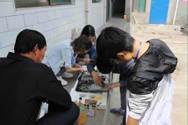 5月15日上午,临汾市尧都区上涧北村村委会人来人往,热闹非凡,几个青年大学生的手指在电脑键盘上飞舞。这里正在举行山西管理职业学院为民服务社会实践活动。