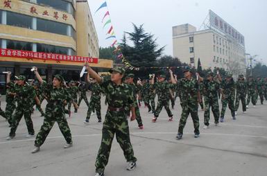 上午9时,在雄壮的国歌声中,五星红旗冉冉升起,拉开了军训汇报表演的序幕。首先是分列式表演,十个整齐的绿色方队,在军训教官的指挥下,喊着嘹亮的口号,迈着矫健的步伐,精神抖擞地走过主席台,威武的雄姿,整齐的队列,引来了阵阵掌声。在随后进行的会操表演中,有队列变换、军体基本功表演、军体拳表演等项目,各方队独具特色,同学们精神抖擞,动作统一,展示2015级新同学良好的综合素质和奋发向上的精神风貌。特别是女子军体操表演,英姿飒爽,巾帼不让须眉,演绎出别样的青春风采,成为汇演场上一道靓丽的风景。