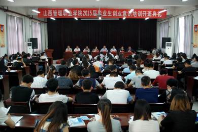 5月22日上午,2015年毕业生创业意识培训班开班典礼在报告厅举行。临汾市人社局局长卢洪顺,学院党委副书记、院长岳澎出席典礼。典礼由副院长闫建辉主持。