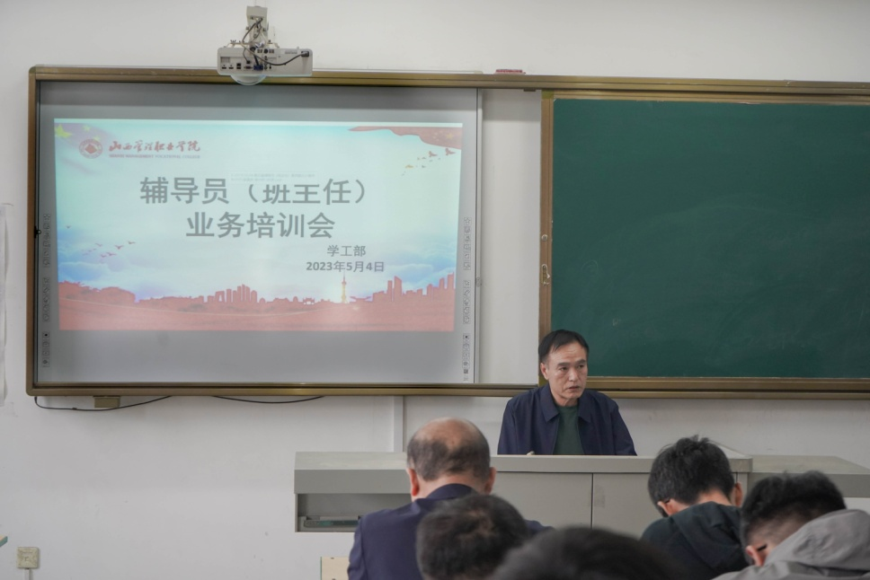 5月4日,学生处组织全院辅导员(班主任)在崇德楼201教室举办了业务培训会。各系书记、现代产业学院、系团委书记、辅导员、班主任参加了培训学习。学生处处长张晋升主持会议。