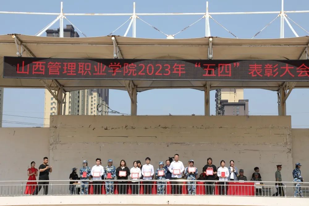 5月8日上午,山西管理职业学院2023年五四表彰大会在田径场隆重举行。院党委书记韦阳,院长王爱国,院党委副书记丁建业,院纪委书记阎泽勇,副院长宋沧、董刚出席大会。副院长尤彩虹主持会议。