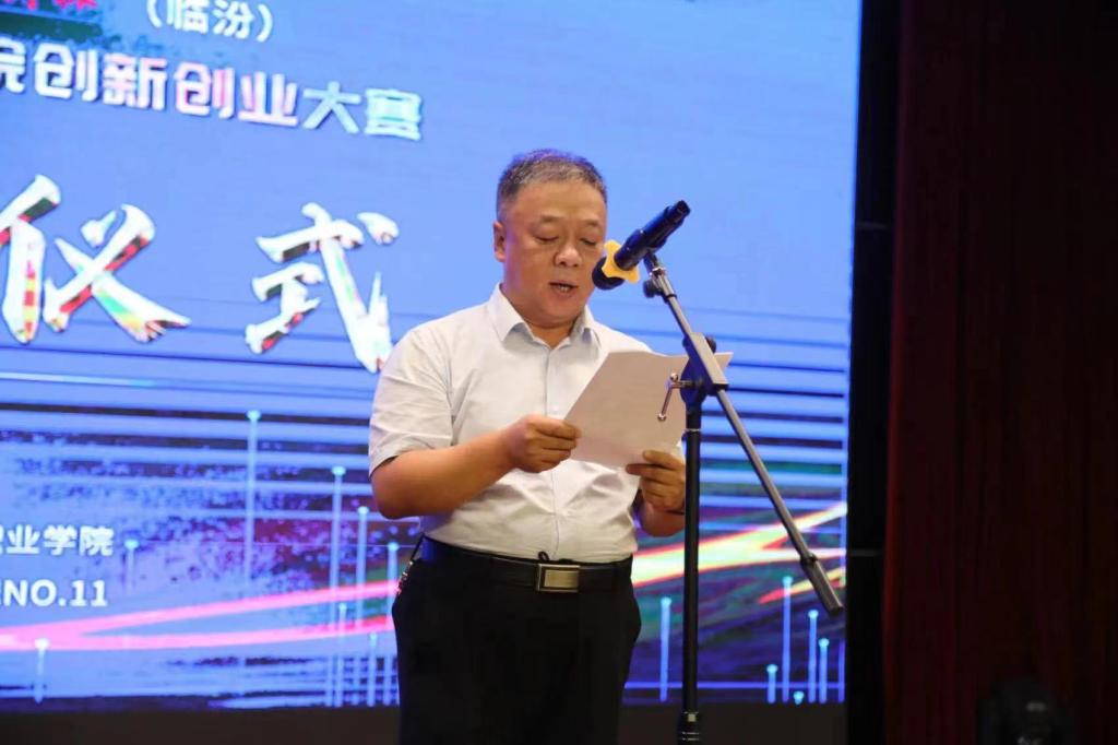尧都高新区党工委书记、管委会主任郭忠义在开幕式致辞中隆重介绍到:尧都高新区是临汾唯一的高新技术产业开发区,自2020年挂牌运行以来,高度重视创新创业工作,一直致力于营造大众创业、万众创新的良好氛围。2021年11月,在市委市政府、区委区政府大力支持和重点打造下,山西智创城NO.11(临汾)成功获批并入驻高新区,经过两年来的持续努力,引进了字节跳动、百度标注、360、网易、北京优炫等一批行业头部企业,已成为临汾创新创业的重要载体和沃土。他说,此次大学生“双创”大赛是贯彻落实国家、省、市关于创新创业、校企融通的生动实践,期待校企共同打造交流展示、产融对接、项目孵化的平台,深入推进青年学子技能成才,以创新促动就业。