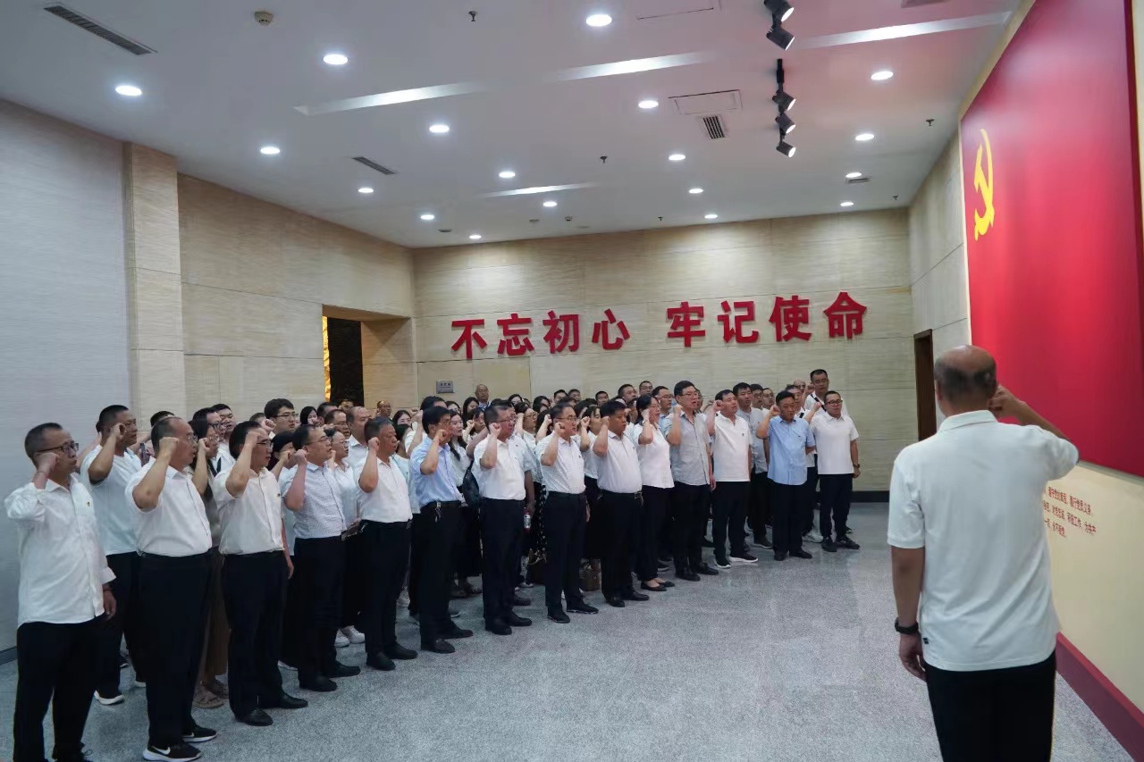 随后,全体党员面向党旗、高举右拳,庄严宣誓,“我志愿加入中国共产党,拥护党的纲领,遵守党的章程,履行党员义务……”宣誓声铿锵有力,充分体现了全体党员坚定不移听党话、跟党走的决心。
