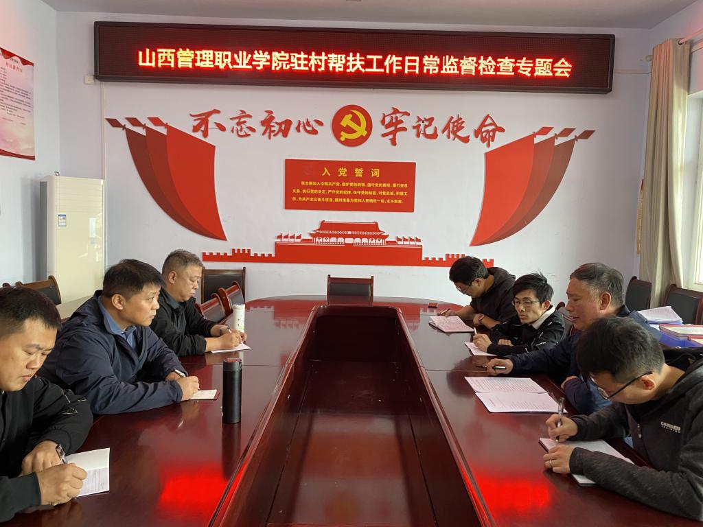 10月17日,山西管理职业学院纪委书记阎泽勇、副院长宋沧一行赴平陆县南坡村监督检查帮扶工作并看望驻村工作队,南坡村“两委”班子参加活动。