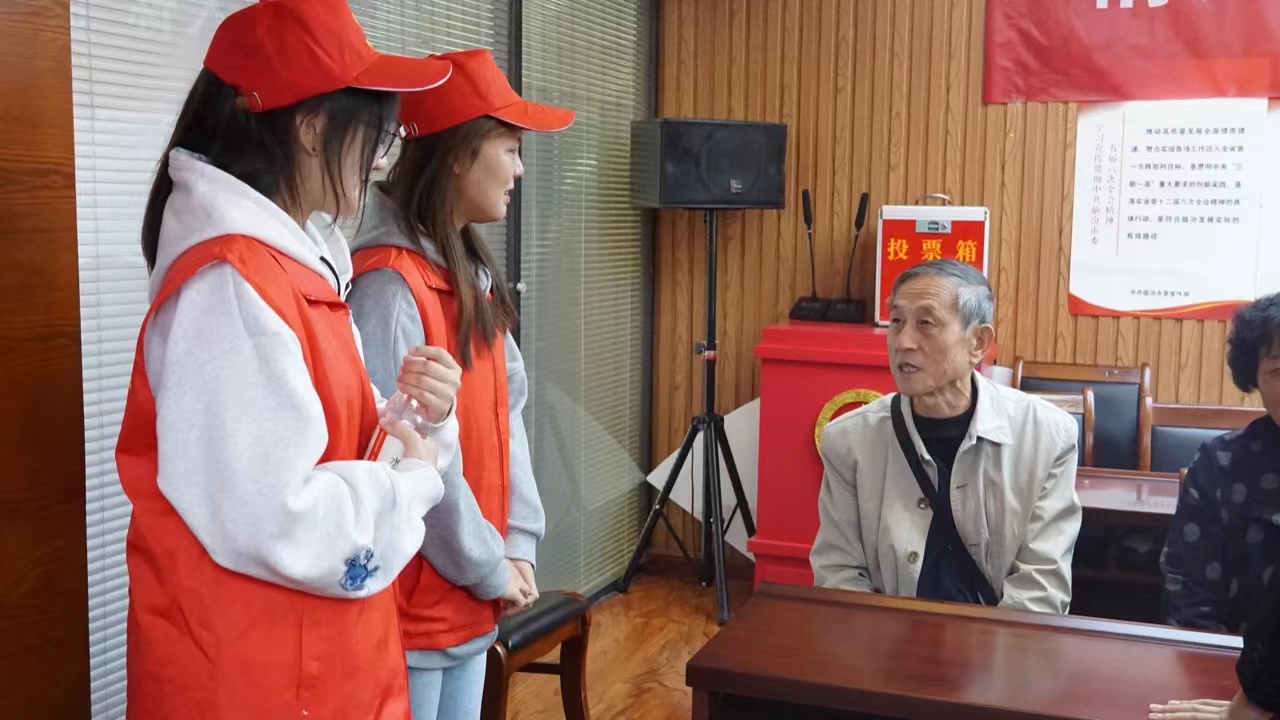 盘龙社区为社区居民提供免费的健康咨询和体检服务,吸引了周边众多居民的积极参与。同学们热情地与老人们唠起了家常,不时地询问他们的生活健康状况,并提醒他们在秋季注意防寒保暖,有的还为老人捶肩、捏背,用自己的行动向他们致以节日的祝福。