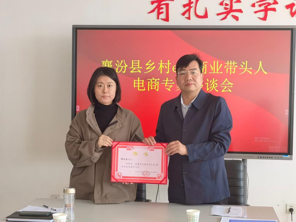 为加快推进襄汾县乡村e镇项目建设,促进电子商务产业高质量发展,培育本土优秀电商人才助力乡村振兴,让农产品插上“云翅膀”,10月24日上午,“襄汾县乡村e镇商业带头人电商专家聘用座谈会”在山西管理职业学院综合楼707会议室举行。临汾云时代技术有限公司项目部负责人杨春阳、襄汾县电子商务协会秘书长张铁、支部书记张建斌,山西管理职业学院校企合作办公室主任张晋江、财贸系负责人薛丽萍、财贸系副主任解云霞和我院电子商务专业教师郗轶君、刘国芳等参加了该座谈会。