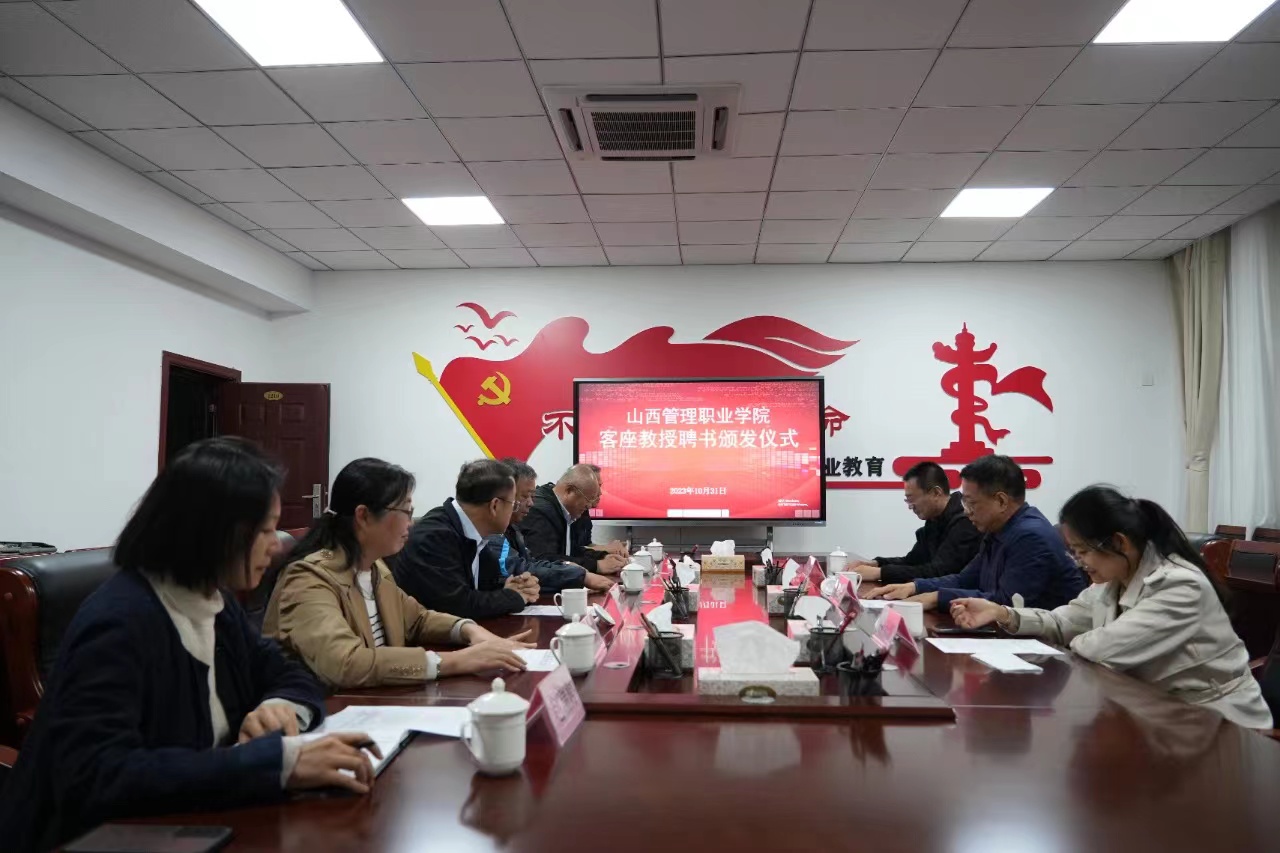 10月31日,学院举行客座教授聘任仪式。聘任太原市产教融合促进会会长、山西德道装备制造集团有限公司董事长樊复钢为学院客座教授。太原市职业发展研究会秘书长宋天琼,太原市产教融合促进会副秘书长高志刚出席。学院党委副书记、院长王爱国,党委委员、副院长宋沧,党委委员、副院长尤彩虹及相关部门负责人参加活动。