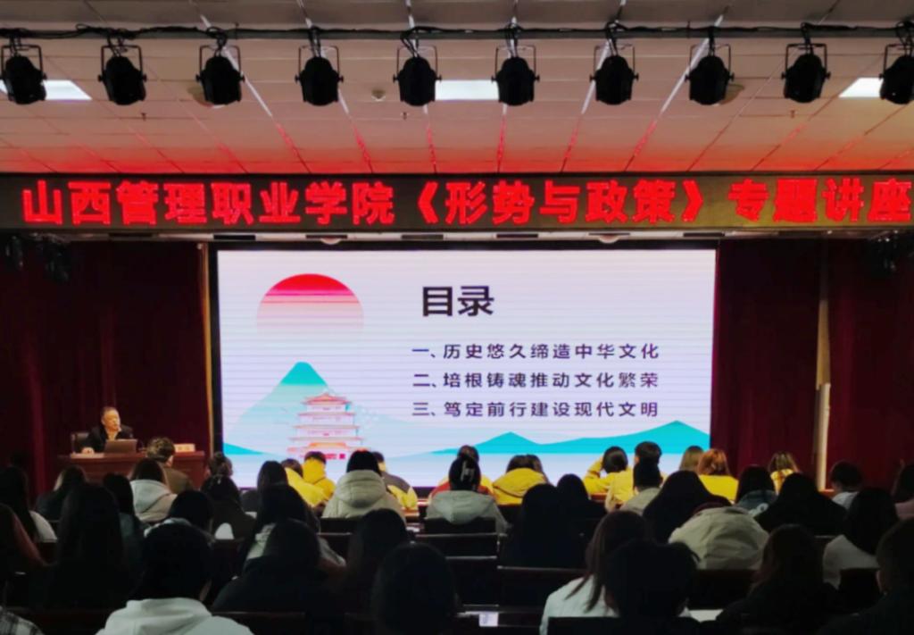 本次专题讲座聚焦思想铸魂、保护传承、文化为民、美德弘扬、舆论传播、文化创新等方面,为努力推动文化繁荣兴盛,奋力开创文化传承发展工作新局面,实现“走在前、开新局”凝聚强大精神力量。听完讲座后,同学们纷纷表示要担当实干,坚定文化自信,以只争朝夕、奋发有为的奋斗姿态更好担负起新的文化使命,以守正创新的正气和锐气努力建设中华民族现代文明。