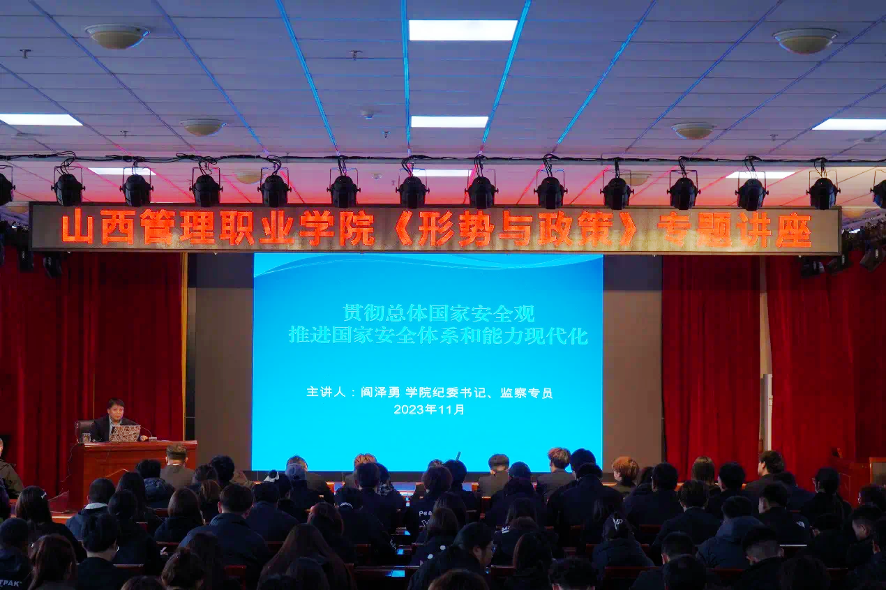 11月14日下午,院党委委员、纪委书记阎泽勇在崇德楼三楼报告厅为文化艺术系学生作《形势与政策》讲座。讲授的题目是《贯彻总体国家安全观推进国家安全体系和能力现代化》。