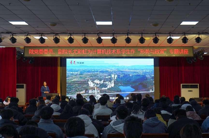 12月22日下午,院党委委员、副院长尤彩虹在崇德楼三楼报告厅,以《大力推进现代化产业体系建设》为主题为计算机技术系学生作形势与政策专题讲座。