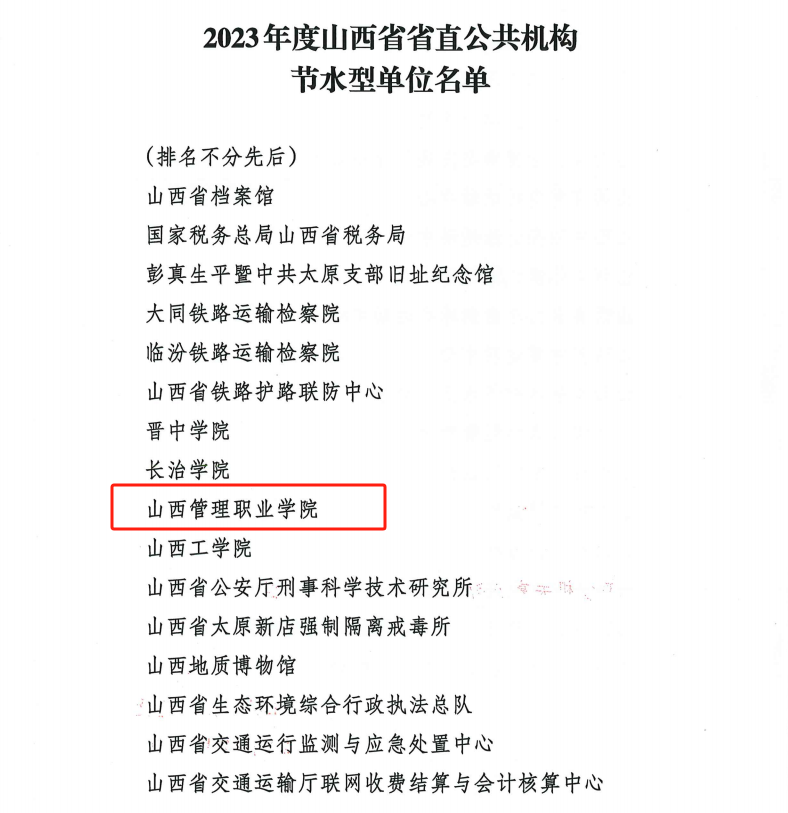 日前,我院经山西省机关事务管理局联合山西省水利厅、山西省住建厅验收评审,确定为“节水型单位”。经教育厅推荐,山西省水利厅、山西省教育厅联合专家审核,确定为“节水型高校”。