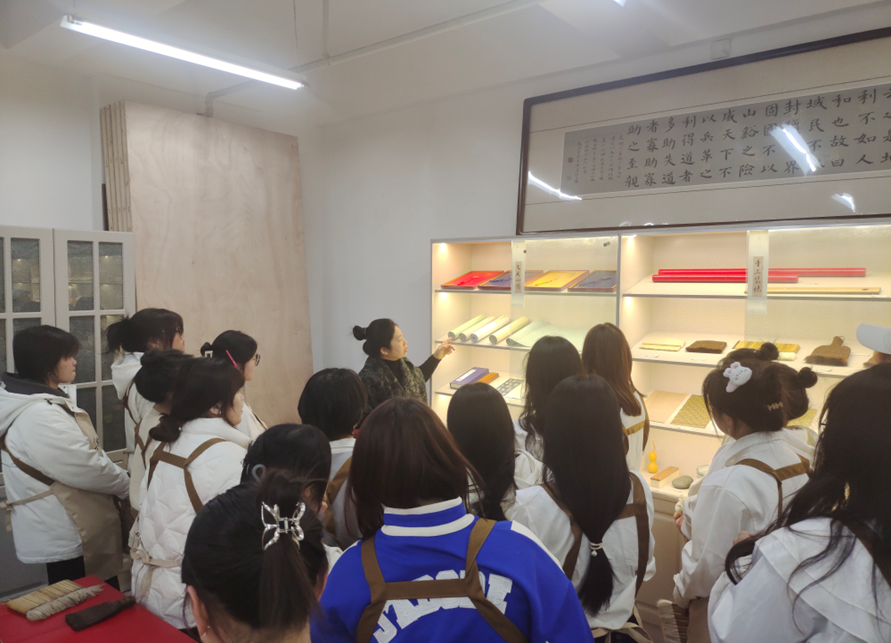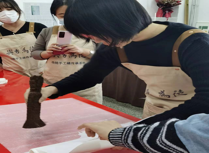 自教育厅认定我院为中华优秀传统文化传统手工裱传承基地以来,文化艺术系根据基地建设方案在综合楼909成立了学生手工裱传习所、在综合楼908成立了教师装裱与修复工作坊,面向全院学生遴选了三十名传习所成员,组织开展了为期15课时的手工裱传习活动,截止2024年1月6日,传承基地第一期手工裱传习活动圆满结束。