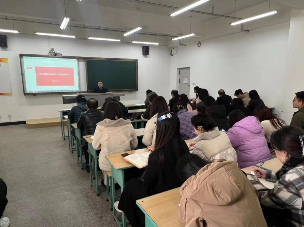 为确保新学期学生工作平稳、高效、有序,2024年3月1日上午10点,学生工作部在崇德楼203教室组织召开2024年春季学期学生工作会议。各系书记、产业学院、系团委书记、辅导员、班主任参加了会议。会议由学工部部长张晋升主持。