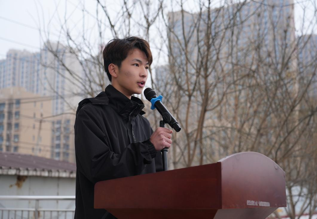 院广播站站长暴杨宇同学代表学生作倡议发言。