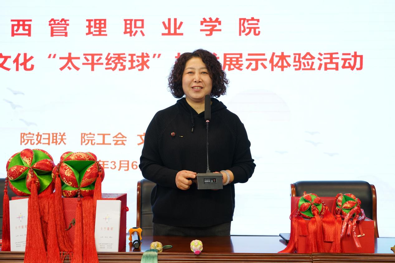 在“三八”国际劳动妇女节来临之际,为深入学习贯彻习近平文化思想,大力培育和践行社会主义核心价值观。院妇联、院工会于2024年3月6日下午在崇德楼三楼报告厅主办了一场别开生面的庆祝活动。此次活动由文化艺术系承办,以优秀传统文化太平绣球技艺展示体验为主题,吸引了众多师生的参与。