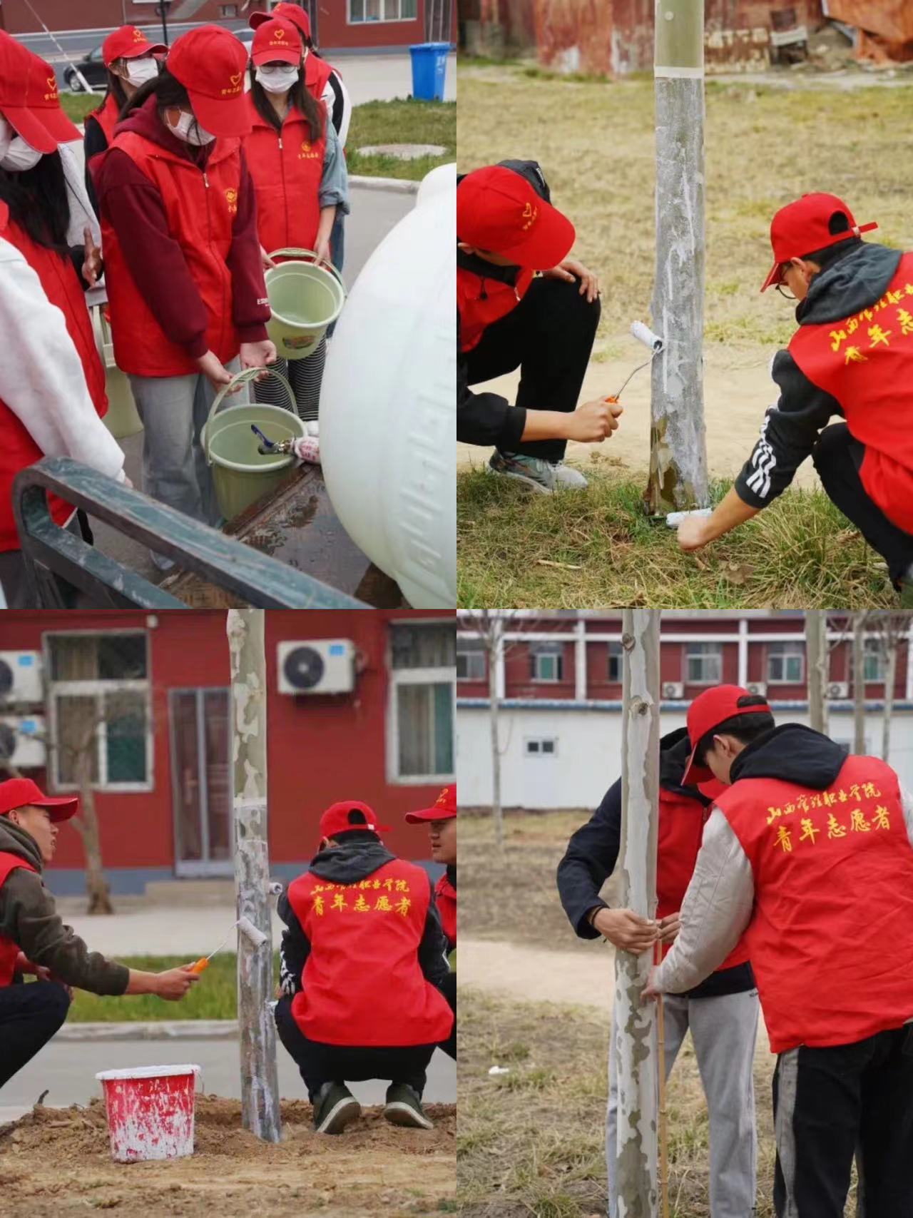活动开始前,学工部张俊老师对活动内容、要求等作了具体安排,青年志愿者协会张佳欣同学宣读了倡议书,随后在后勤保障部工作人员的带领下,大家各司其职,分工明确,运苗、挖坑、填土、浇水、粉刷,干得热火朝天,全身心的投入。