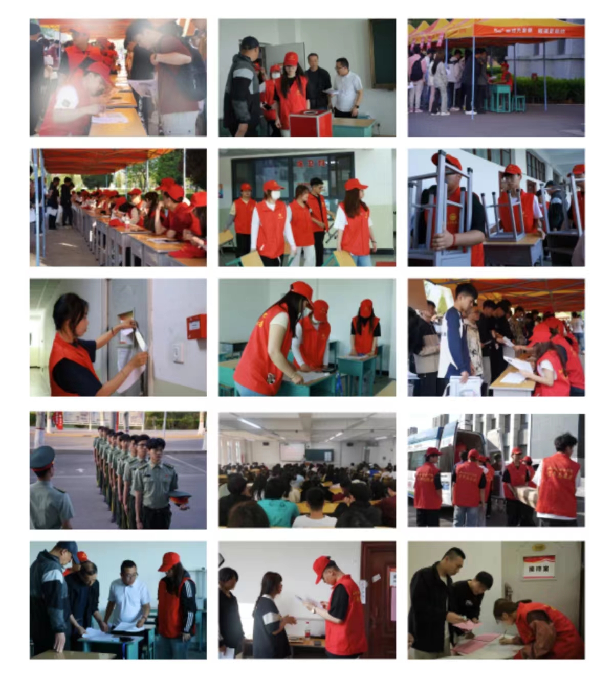 早上6:30,志愿者们穿上红色志愿服装,佩戴好工作牌,提前到达各自的工作岗位上,耐心等待考生的到来。在工作中,志愿者们耐心为考生指明考场方位,介绍考试流程、解答考生问题、维持考区秩序等。在接到考生丢失的身份证及其他遗忘物品时,第一时间通过校园广播解决问题。志愿者们在良好的沟通和组织协调下,帮助考生解决了许多突发情况,使他们顺利进入考场,安心参加考试。青春靓丽的红马甲志愿者们,秉承着志愿服务精神,凭着一股青春热血和一份坚定的责任感,为我院单招工作贡献了青春力量。