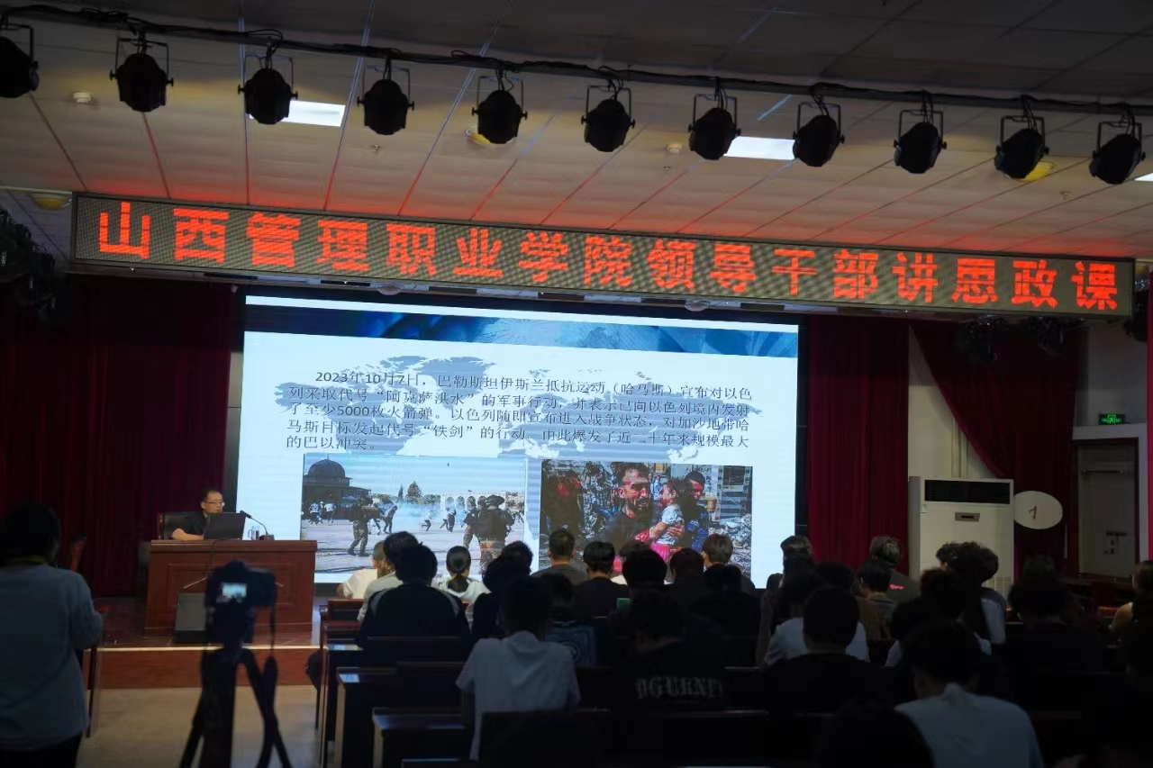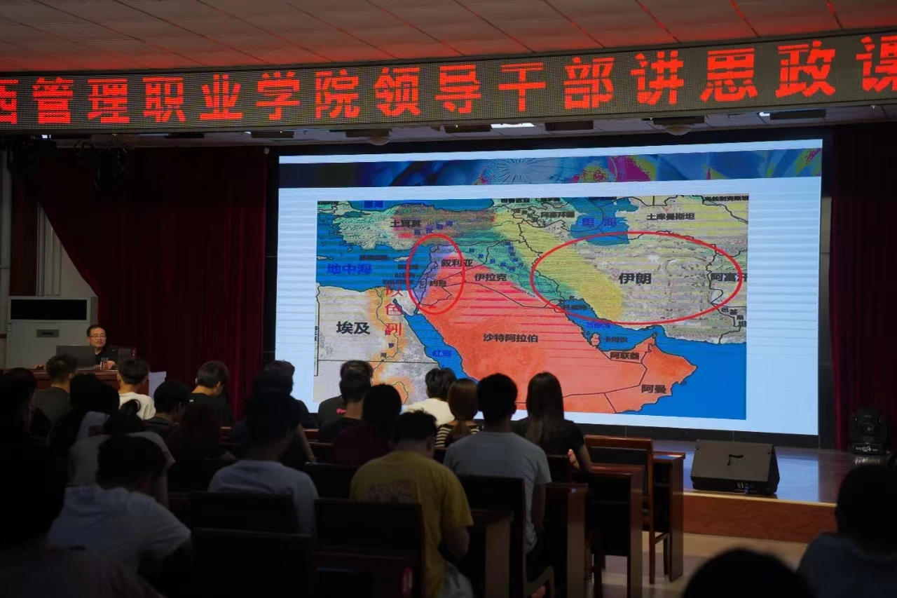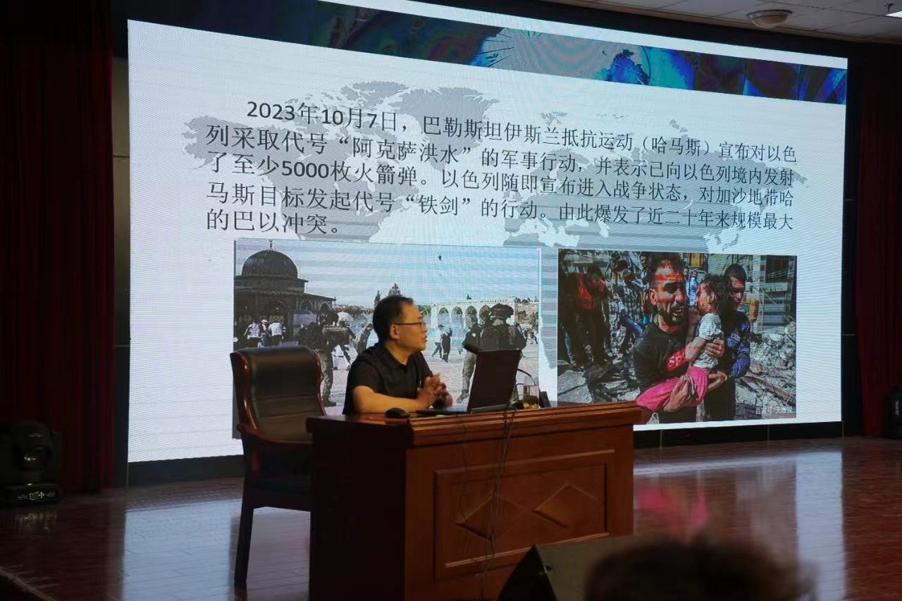 6月13日下午,院党委委员、副院长董刚在崇德楼三楼报告厅,以《巴以冲突与中国原则立场》为题为管理与服务系学生作形势与政策专题讲座。