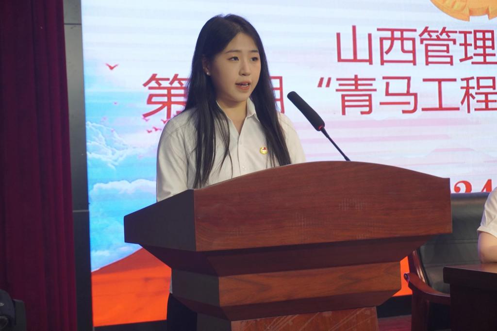 “青马班”班长高乐妍作为本次培训班优秀学员代表发言。她分享了在“青马班”的学习体会和美好收获,并表示在未来的日子里,将继续传递青马精神,影响和带动身边的青年朋友,共同坚定理想信念,积极进取,奋发有为,努力成长为有理想、敢担当、能吃苦、肯奋斗的新时代好青年,为实现中华民族伟大复兴的中国梦贡献自己的青春力量。