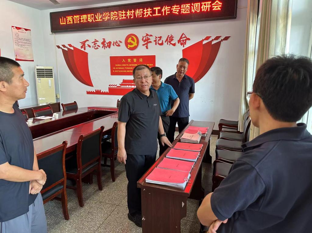 8月21日,山西管理职业学院党委书记韦阳、党委副书记丁建业、思政部主任解晓军一行赴平陆县南坡村看望慰问驻村工作队并调研指导驻村帮扶工作,南坡村“两委”班子成员参加调研活动。