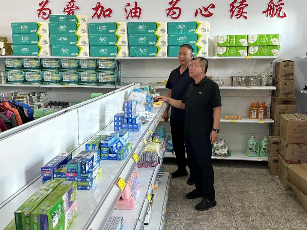 最后,韦阳一行查看了帮扶村爱心超市运营情况,韦阳表示,要按照村民需求及时增加商品种类和数量,充分发挥爱心超市以劳积分、以分换物、以物励志的作用。