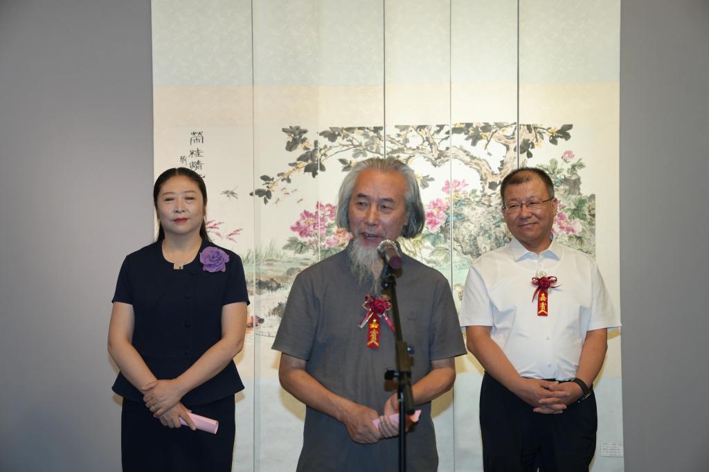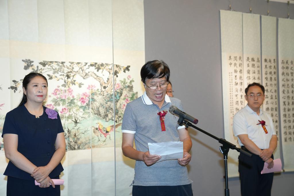 开幕式上,王爱国代表学院感谢各位领导、嘉宾对本次书画传统装裱技艺展的支持。他指出,本次展览共收到了来自16所高校及省市文联、画廊等7家单位的135幅稿件,本次展览共展出其中的75幅,每一幅都凝聚着书画作者的心血与才华,而每一道装裱工序都承载着我们对传统技艺的敬畏与传承。