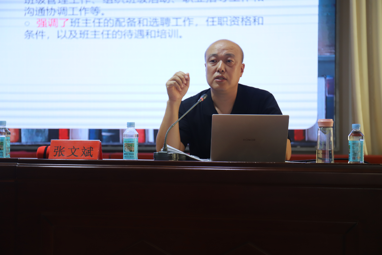 本次教师培训会上,思政部主任解晓军和团委书记张文斌分别为平陆县第一高级职业中学全体教职工作了《加强职业道德教育 提升教师综合素养》和《班主任工作的道与术》为主题的讲座。平陆县第一高级职业中学校长周向阳以及副校长张红娟、年级主任、教研组长等人员出席。