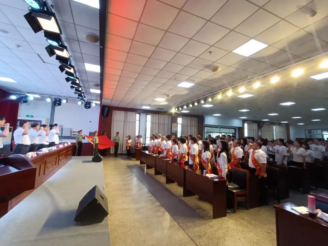 优秀教师田清华带领全体教师进行庄严宣誓。