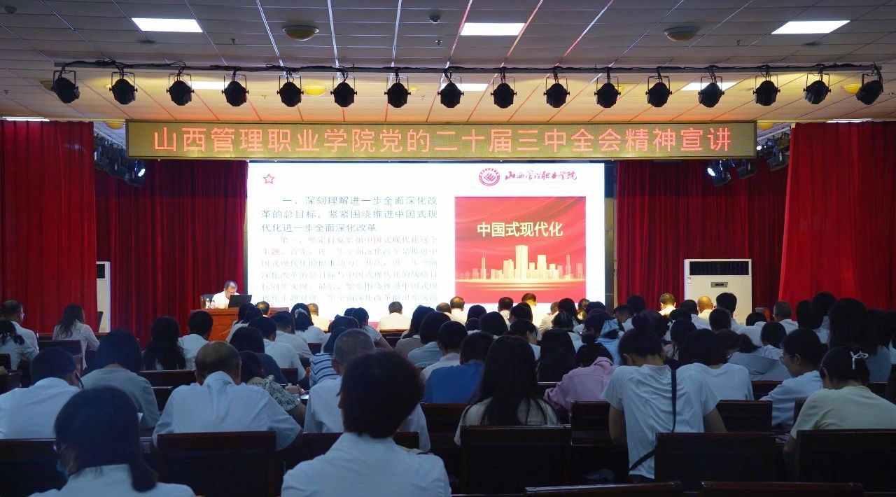 9月9日下午,学院党委书记韦阳以《深刻把握进一步全面深化改革的总目标 坚定信心 不断把中国式现代化推向前进》为题,宣讲党的二十届三中全会精神。学院党政班子成员及全体教职工参加宣讲报告会。