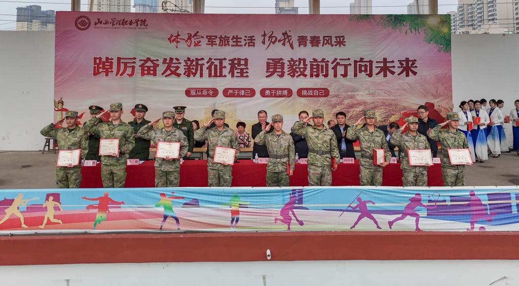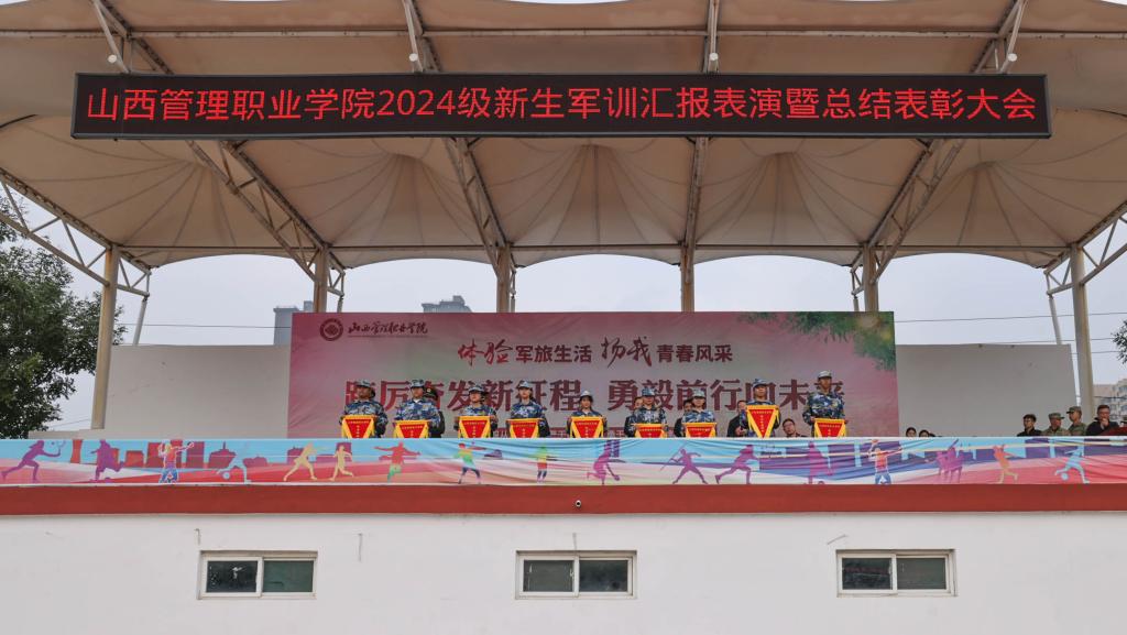 10月27日,山西管理职业学院2024级学生军训成果展示暨总结表彰大会在田径场隆重举行。学院党委班子成员出席大会。大会由党委委员、副院长董刚主持。