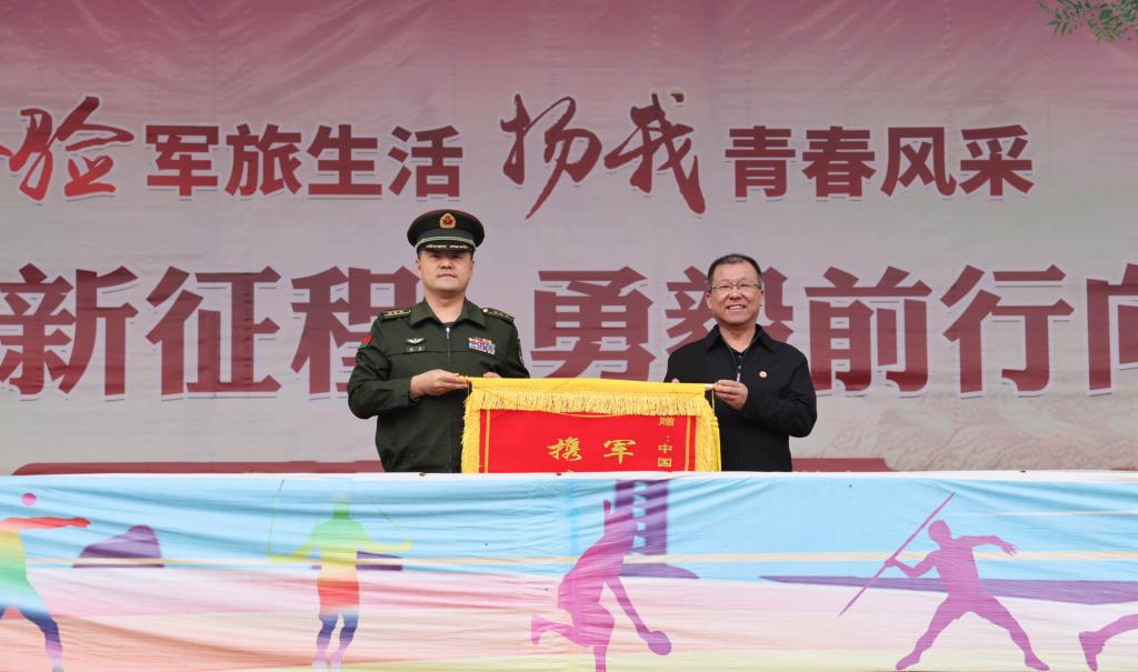 院党委书记韦阳向承训部队赠送锦旗。