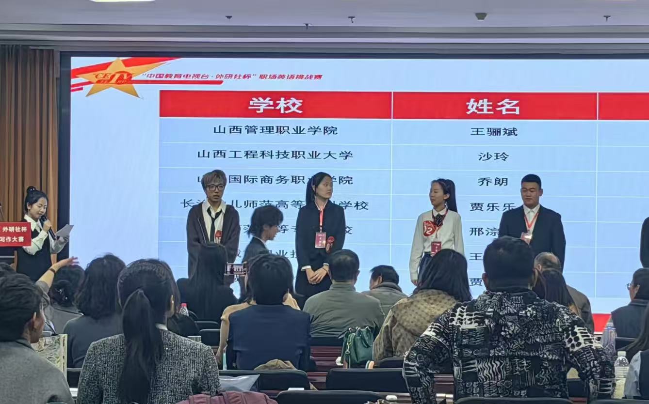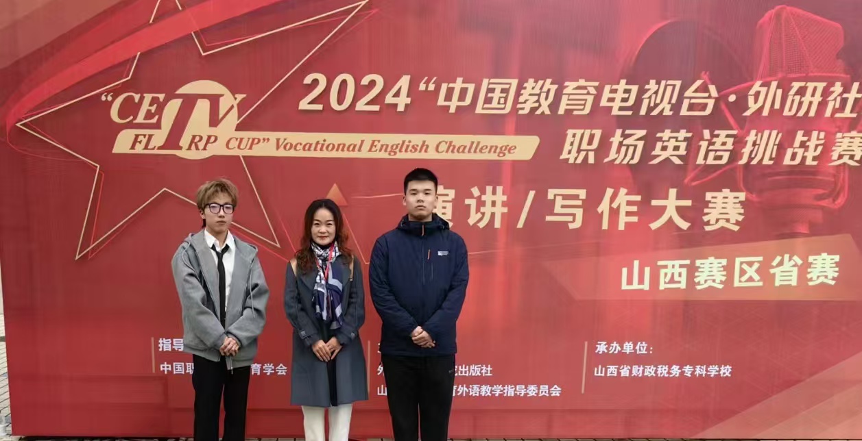 11月3日,我院学生在2024“中国教育电视台·外研社杯”职场英语挑战赛山西赛区省赛中获得一等奖1项、三等奖1项的好成绩。获得一等奖的是财贸系23级会计信息管理一班王骊斌,获得三等奖的是计算机技术系23级数字媒体技术四班殷煜。指导教师均为田清华。