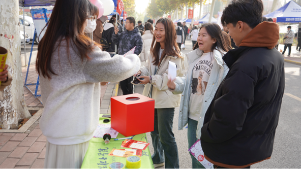 在社团嘉年华活动中,每个社团展位设置了特色趣味游戏。参与活动的学生在各个展位之间穿梭,通过挑战不同的游戏来获取印章,集齐全部社团标识印章,即可兑换参与幸运抽奖。活动中,各社团积极展示自身特色,处处洋溢着青春活力。
