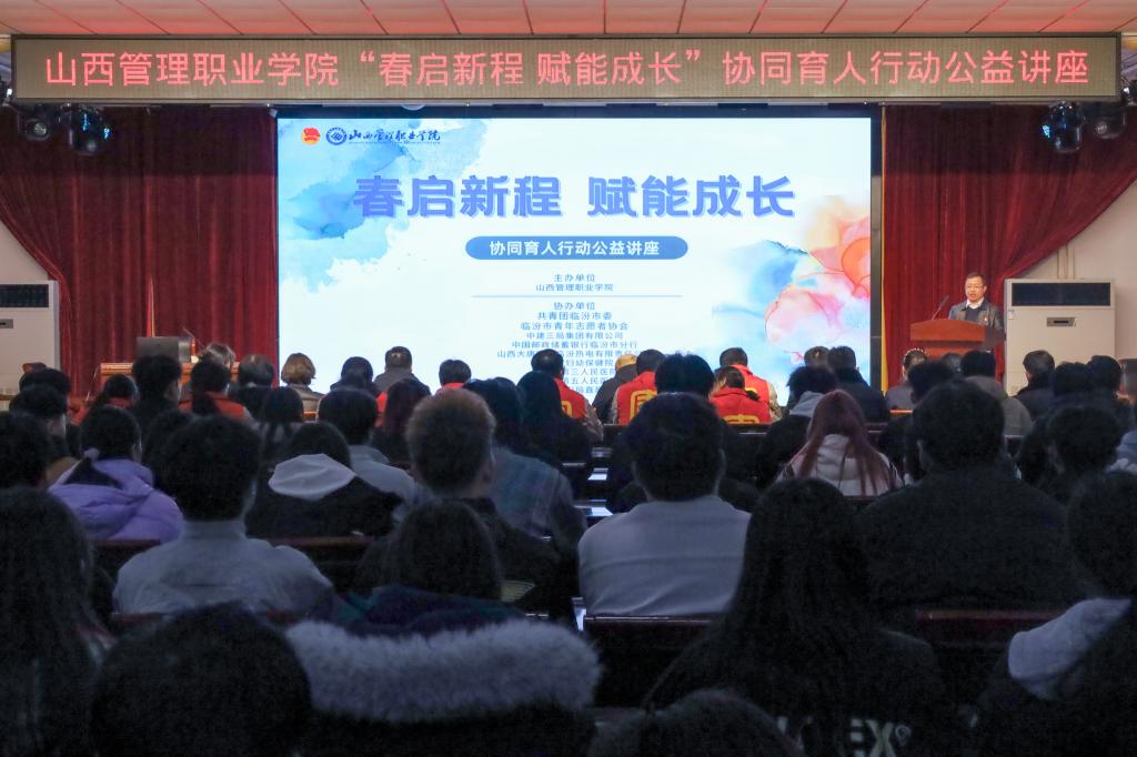 在共青团临汾市委的组织下,本次讲座由山西管理职业学院主办,联合中建三局集团有限公司、中国邮政储蓄银行临汾市分行、山西大唐国际临汾热电有限责任公司、临汾市妇幼保健院、临汾市第三人民医院、临汾市第五人民医院、临汾市公安局直属分局、临汾市青年志愿者协会承办,旨在通过校、警、医、企、银多方联动的创新模式,突出资源整合与社会化育人特色,通过多元资源为学生全面发展注入能量。