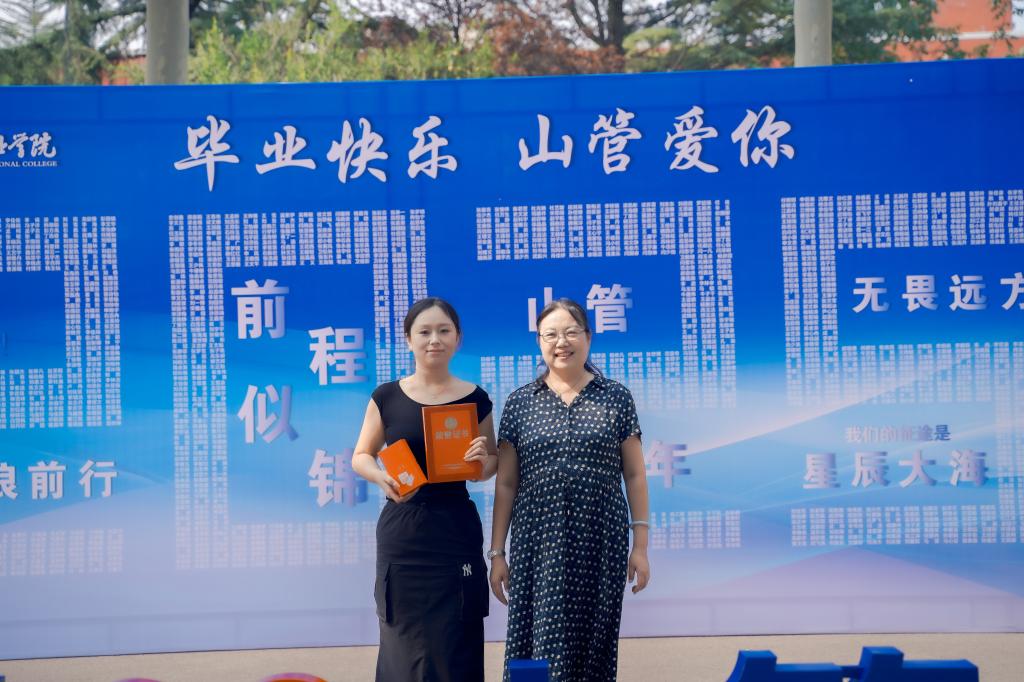 副院长尤彩虹为优秀毕业生颁发证书及学院文创纪念品。