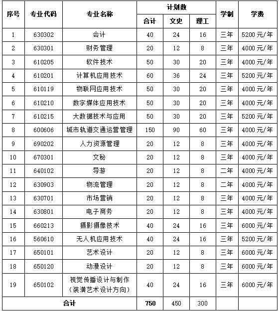2021年我院在19个专业单独招生,招生计划数合计为750人。我院严格执行省物价部门批准的收费标准。各专业招生计划、学制、收费标准具体如下: