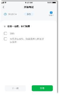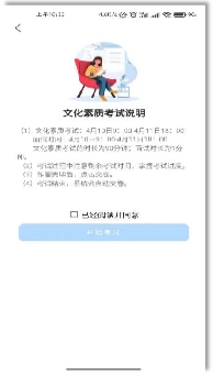 勾选考试须知,开始文化素质考试。答题完毕,点击交卷即可。