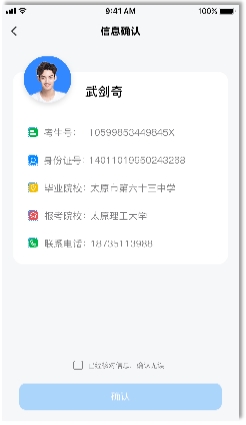 3.信息确认:核对个人信息,核对无误后进行勾选确认。