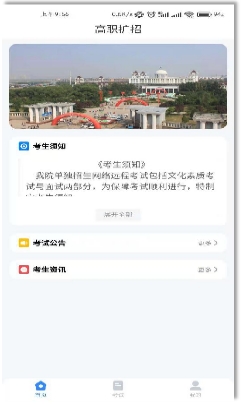 1.【首页】可查看学校的考生须知,考生公告,考生咨询。
