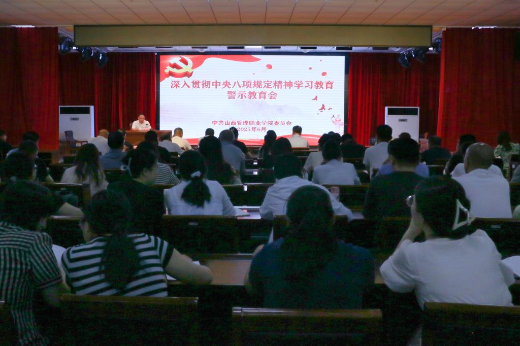 6月12日,学院召开深入贯彻中央八项规定精神学习教育警示教育会。会议深入学习贯彻习近平总书记关于加强党的作风建设的重要论述,深刻剖析反面典型案例,推动以案促学、以案促改,教育引导全院党员干部增强纪律和规矩意识,在一体推进学查改上下功夫,坚定不移将党的作风建设持续引向深入。学院党委书记李苏林主持会议并讲话。党委班子成员、全体党员及非党员副处级领导干部参加会议。