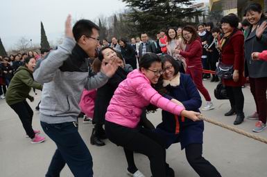 3月7日中午,教学楼前广场红旗飘飘,人声鼎沸,由院教育工会组织举办的女教工拔河比赛激烈进行,为即将到来的“三八”妇女节增添了节日欢快气氛。