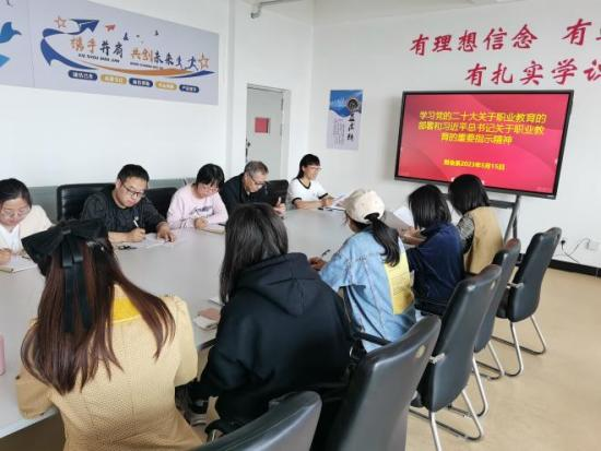5月15日,山西管理职业学院财会系组织开展学习“党的二十大关于职业教育的部署和习近平总书记关于职业教育的重要指示精神”的活动。活动中,财会系全体教师共同学习了“党的二十大报告关于职业教育的新提法”和“习近平总书记关于职业教育工作的重要指示”,认真梳理二十大报告中的新观点、新思想、新战略和新要求,深入学习职业教育中的职普融通、产教融合、科教融汇、优化职业教育类型定位,重点掌握对习近平总书记提出的深化体制机制改革、牢牢把握服务发展、促进就业的办学方向、引导社会各界特别是行业企业积极支持职业教育、努力建设中国特色职业教育体系、创新各层次各类型职业教育模式等的相关内容。