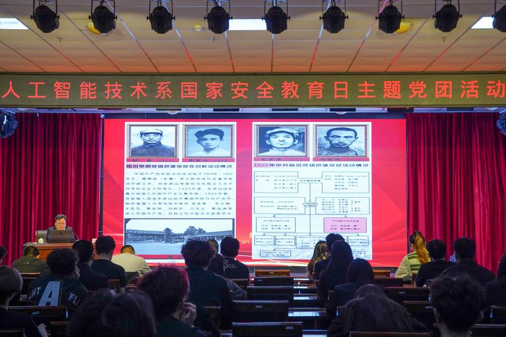 4月14日下午,人工智能技术系党支部联合系团委开展“筑牢国家安全防线・传承红色刘村精神”主题党团课活动,全系党员、入党积极分子及团员代表参加。