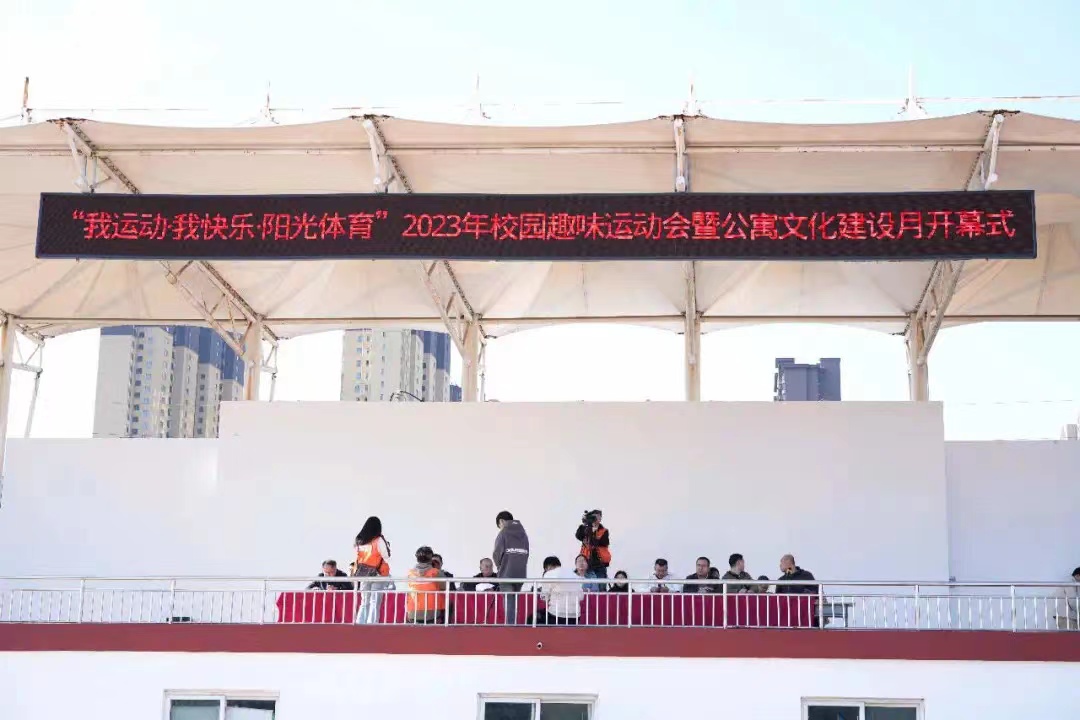 筑梦新时代,青春展风采。11月7日,山西管理职业学院“我运动·我快乐·阳光体育”2023年校园趣味运动会暨公寓文化建设月活动开幕式在田径场隆重举行。院党委委员、副院长尤彩虹出席并宣布趣味运动会开幕。